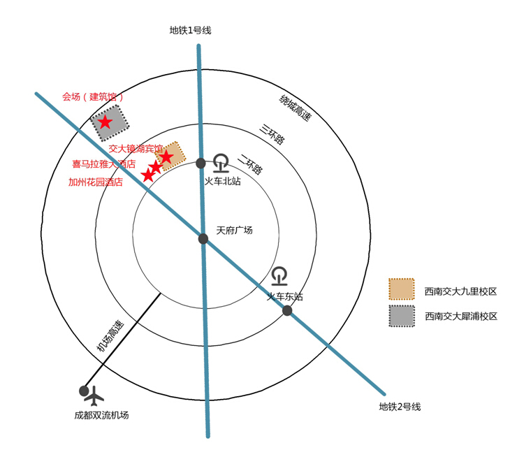 以下酒店距成都双流机场打车40分钟左右。会议期间将提供大巴接送各位嘉宾往返酒店到会场。