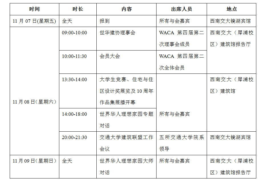 2014世界华人建筑师协会第四届第二次会员大会议程:11月08日(星期六)上午