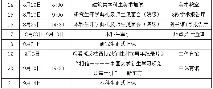 3、除2015级新生外,本科、研究生报到时间为2015年8月27日、28日, 8月31日(星期一)正式上课。