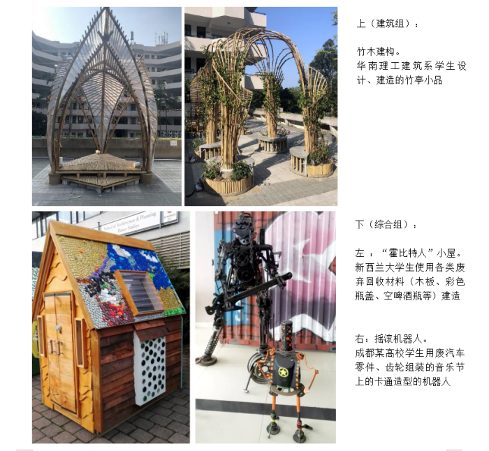 使用材料不限。但鼓励使用以下两类材料,并提倡变废为宝的创意设计,倡导绿色可持续的建造理念。