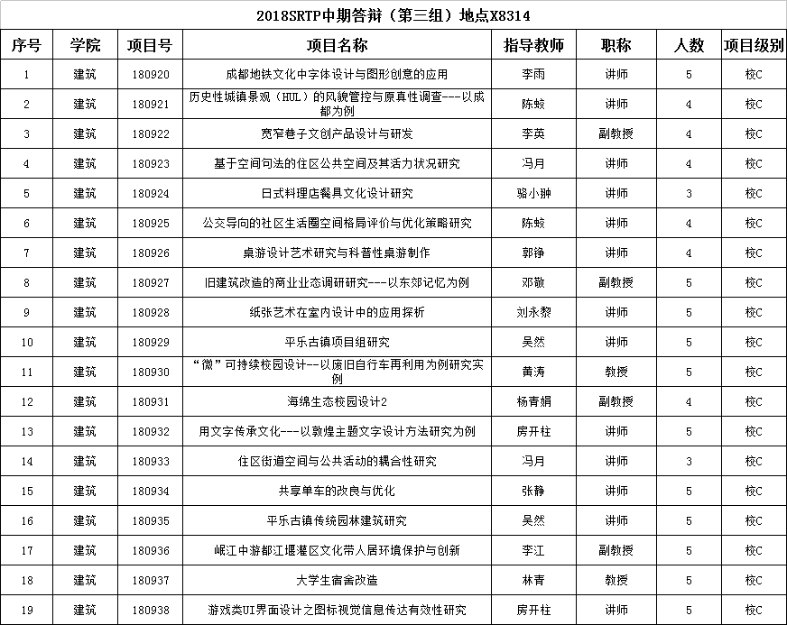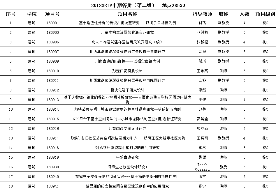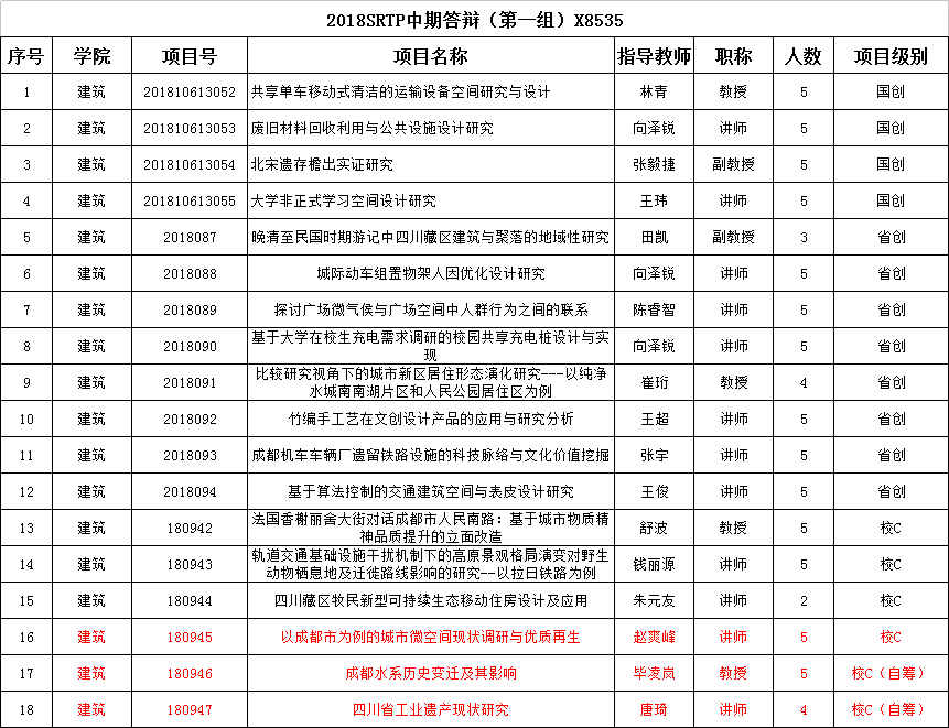 根据大学生创新创业训练计划项目(SRTP)工作流程安排,学院将对已通过本学期第一阶段检查的2018年项目进行中期检查,请做好准备工作。具体安排如下: