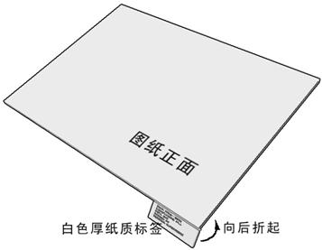 ⑥提交打印图纸每一张从正面看的右下角加贴一张白色厚纸标签(确保其牢固附着),在其正面(宽×高=120mm×50mm)以印刷体写明(或打印)如下内容: