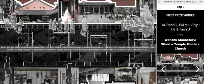 我院张宇老师参赛团队提交的英文论文《文殊院:当寺庙遇见教堂》(Wenshu Monastery: When a Temple Meets a Church)在Archiol第二届建筑史国际征文竞赛中荣获第一名。本次Archiol 建筑史论文竞赛的得奖论文来自包括中国、克罗地亚、印度、美国等多个国家。获奖团队中除张宇老师外,还有今年刚毕业的2018级本科生马瑞(现就读于法国巴黎马拉盖国立高等建筑学院)和何诗雨同学。