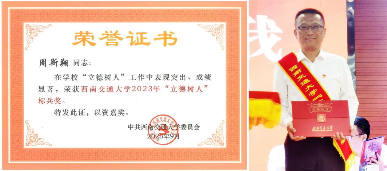 “立德树人”先进集体和先进个人,我院教师周斯翔作为7名“立德树人”标兵奖之一光荣地站上了领奖台。