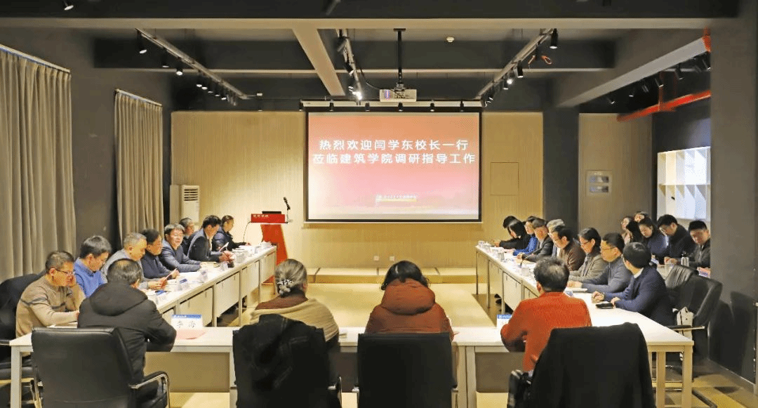 12月21日上午,校长闫学东一行莅临建筑学院,就学院建设与高质量发展开展深入调研与交流,学院党政领导、学科带头人、系主任、部门干部、青年教师代表等参加会议。会议由建筑学院党委书记胡伟主持。