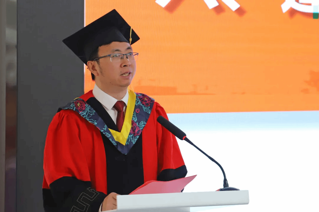 教师代表杨钦然导师上台发言。他分享了自己与同学们共度的难忘时光,并表达了对毕业生们的美好祝愿。杨老师鼓励毕业生们要保持对专业的热爱和执着,勇于面对挑战,不断学习和进步。