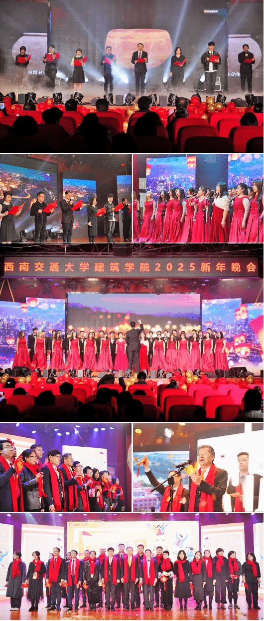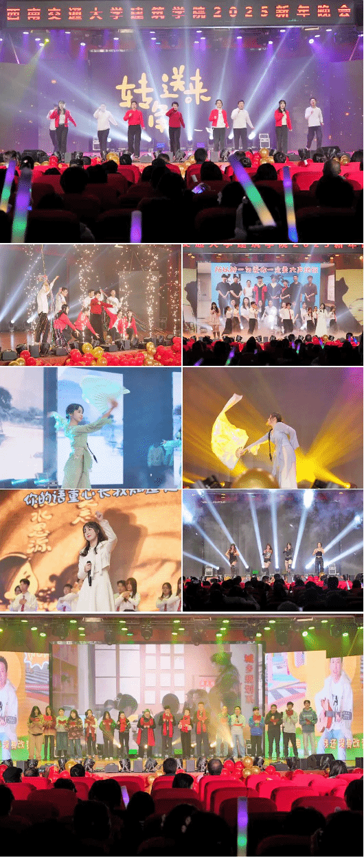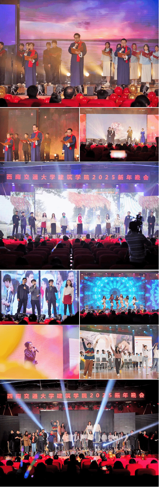 华灯璀璨,星光熠熠,今晚的盛会绝非一场寻常的才艺秀场,而是激昂奋进新征程的嘹亮号角。建筑学院的师生们,正汇聚于此,心怀壮志豪情。看那舞台上灵动的舞姿、激昂的歌声,无不展现着他们蓬勃的朝气与昂扬的斗志。展望未来,他们将秉持着 “竢实扬华,自强不息” 的交大精神,以无畏的勇气、坚定的信念和不懈的努力,投身于学院的蓬勃发展、学校的双一流建设以及国家的伟大复兴事业之中,向着那充满希望与光明的未来,昂首阔步,坚毅前行,书写属于他们的壮丽篇章。
