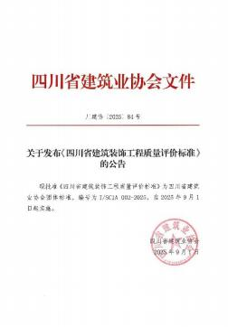 我院参编的四川省建筑业协会团体标准《四川省建筑装饰工程质量评价标准》 (T/SCIA 002-2025)于 2025 年 9 月 1 日发布并实施。在学院领导的大力支持下,