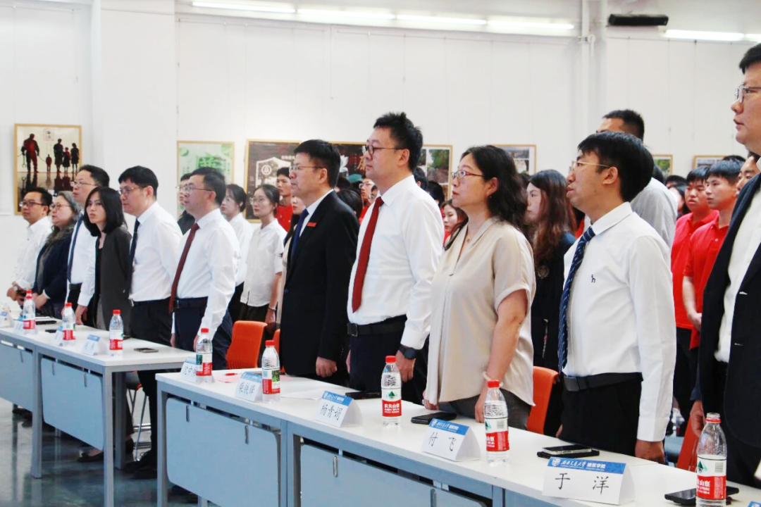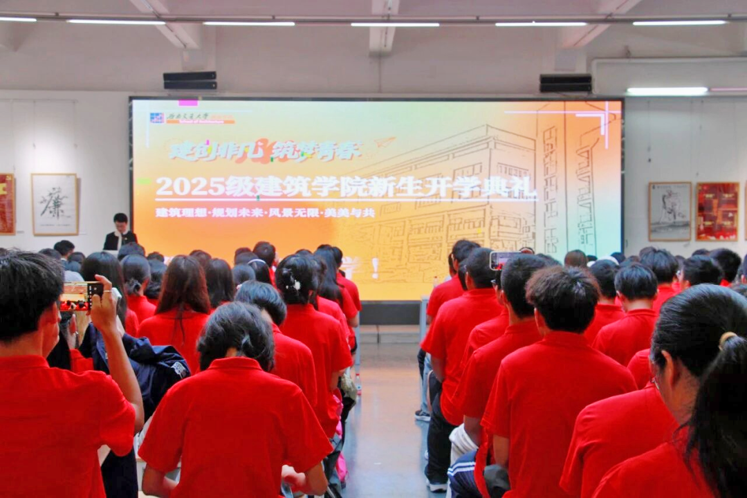 美术馆大厅隆重启幕。建筑学院党委书记胡伟、院长沈中伟率全体班子成员、各系领导、各科室行政老师、教师代表及全体新生共同出席了典礼,党委副书记刘一杰主持典礼。