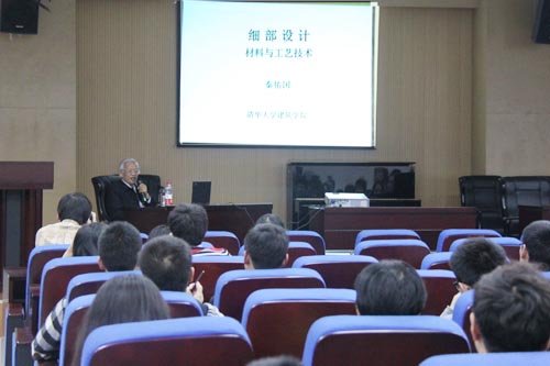 秦佑国教授的学术讲座分为“建筑材料外观”和“工艺技术”两部分进行。秦佑国教授指出,了解现代工艺,能够把握建筑的细部是建筑师的基本功。但当前中国的建筑普遍缺失细部设计,建筑工艺缺少精益求精。中国建筑与国际先进水平的差距,细部设计可能是最主要的。中国现阶段的建筑设计教学中也几乎没有这方面的内容,因此,强调细部设计是十分必要与迫切的。