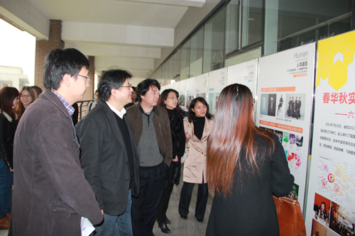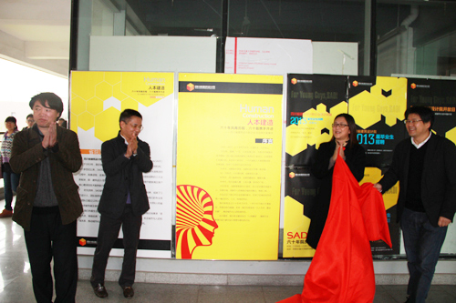 领导结束致辞后是省院展览的揭幕仪式,领导和学生们来到展厅走廊观看省院的展览,展览主要展示了省院的交大校友风采以及省院近年来的各项成就,整个展厅走廊热闹非凡。最后建筑学院沈中伟院长、王志杰书记和四川省建筑设计院李纯院长、陈中义书记共同为活动揭幕。