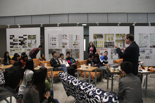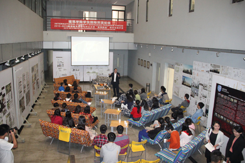 2013年3月25日,建筑学院在8号教学楼中庭举办了2012-2013美国俄克拉荷马州立大学(OSU)“暑期殿堂”项目交流沙龙。建筑学院沈中伟院长、党委栗民副书记、崔珩副院长、周斯翔老师以及美国俄克拉荷马州立大学来访教师与建筑学院学生们一起参加了本次活动。