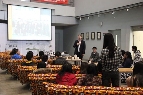 活动中,来自OSU的教师Michel为大家介绍了OSU大学的文化以及教学理念等。Michel老师真诚地邀请建筑学院的同学们去OSU进行交流学习。