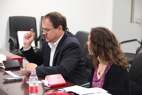 Michael Holmes教授对沈中伟院长和建筑学院的热情接待深表感谢。他回顾了2012年度暑期殿堂项目的情况,对参与该项目的建筑学院学生予以了高度评价,并进一步对2+3交换项目、短期交换生项目等学生互换项目进行了介绍。就2013年暑期殿堂项目的准备工作和2014年带领OSU学生团队访问建筑学院并开展联合设计的计划进行了介绍。Kim Toscano教授介绍了园艺与景观系植物园的可为国际交流项目和国际学生提供的实践和培训项目的基本情况。