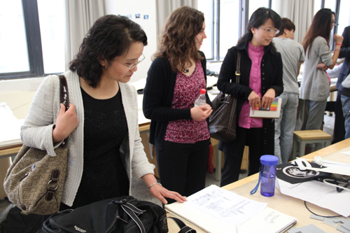 会谈结束后,沈中伟院长等学院领导陪同OSU代表团一行参观了建筑馆,观摩了学生设计课教学过程,并一同出席了同日举行的“建筑学院学生国际交流论坛——2012-2013美国俄克拉荷马州立大学“暑期殿堂”项目交流沙龙”活动。