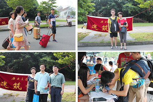 2013年8月27日,建筑学院的迎新工作正式开始。学院研究生、本科生全体辅导员老师带领负责迎新的同学早已守候在了迎新点,耐心地等待着2013级新同学的到来。