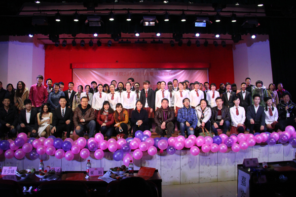 2013年12月27日晚19.30分,建筑学院2014年元旦晚会暨师生联欢会在一食堂三楼大学生活动中心成功举办,建筑学院党委栗民副书记、崔珩副院长、李异副院长,全体辅导员、各班导师、专业老师及兄弟院系师生参加了本次晚会。