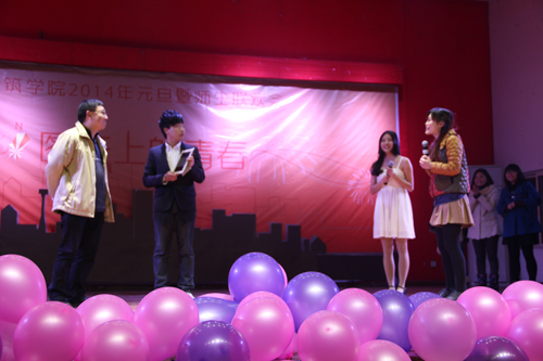 在电声乐队的强力伴奏下,人气歌手13级研究生金秋平高歌一曲,迅速将全场的气氛调动起来,此时2014年建筑学院元旦晚会正式拉开序幕。在这喜庆祥和之时崔珩副院长代表学院致新春贺辞,深情地表达了学院对学生的亲切问候和对崭新的2014年的祝福,希望同学们在新的一年中继续扬帆起航,追逐自己的梦想。随后栗民副书记宣读了2013年度建筑学院表彰决定,并号召全院各班级和广大同学要以先进集体、优秀学生为榜样,学习他们的崇高品质、优良品德、奋斗精神,争创先进集体,争当优秀学生。