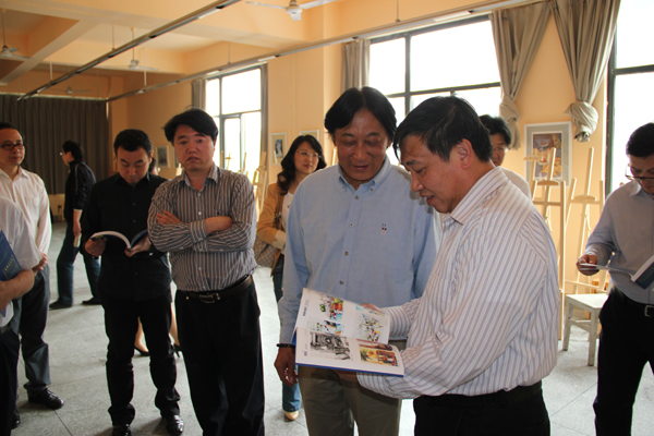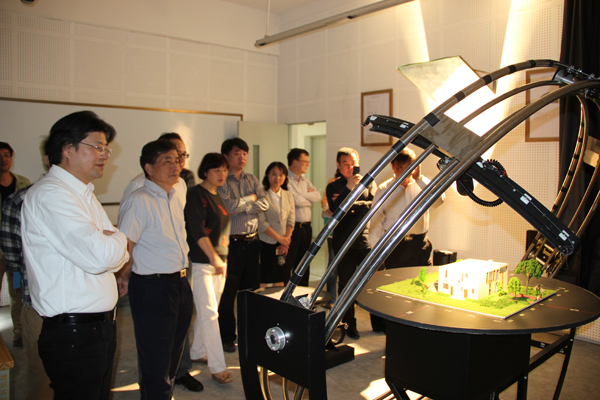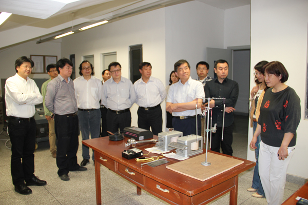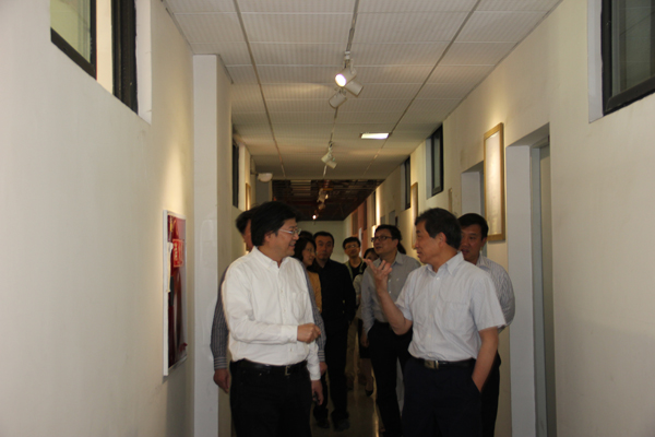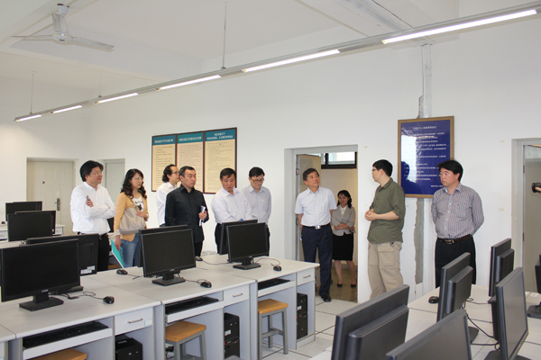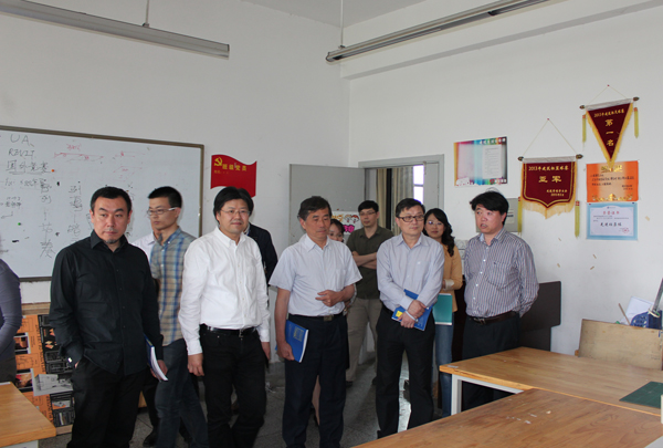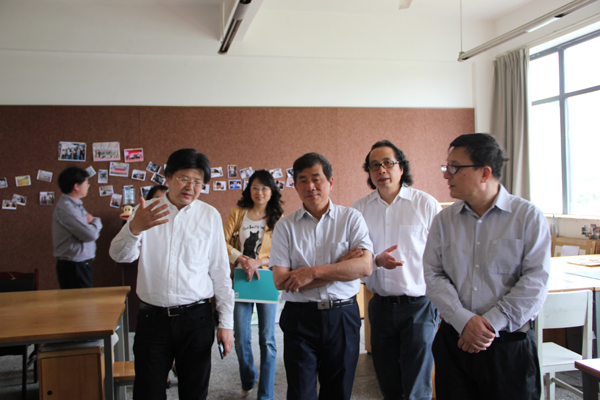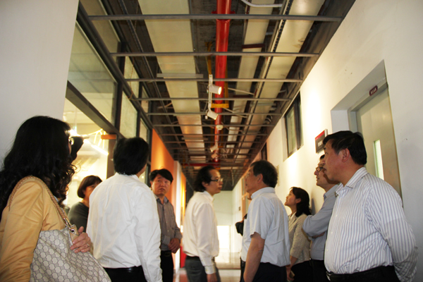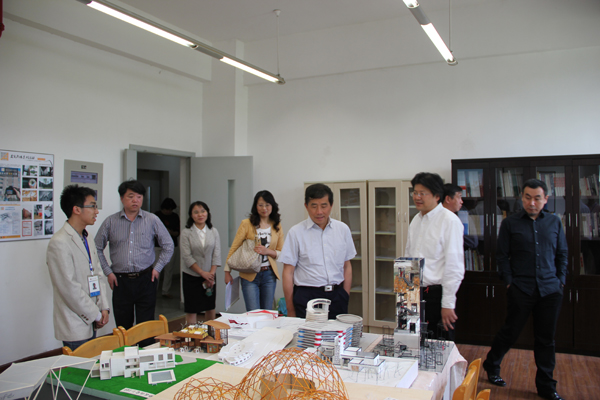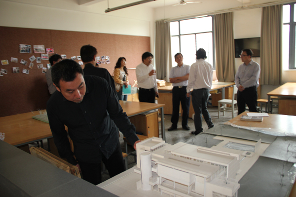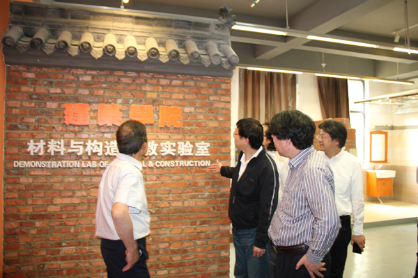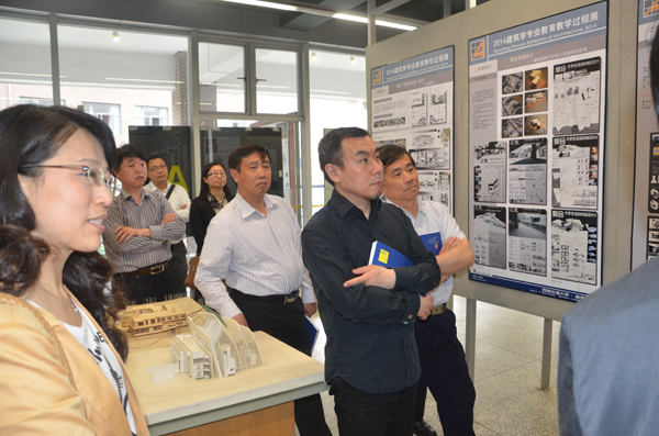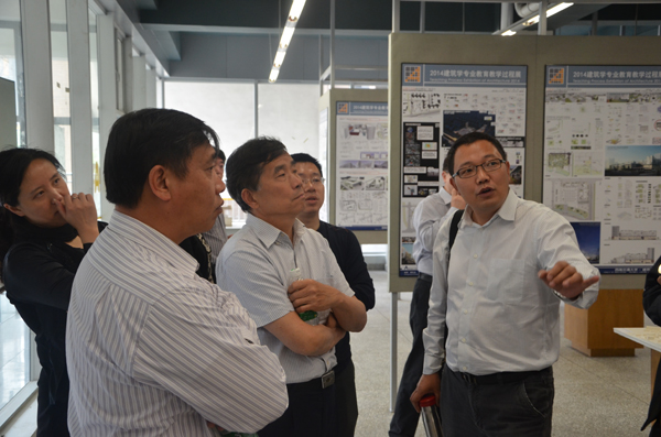 评估专家巡视建筑学院专业教室并与专业教师交流