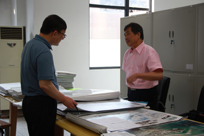 5月7日上午8:40、下午16:40,评估专家在建筑学院图档室分两组先后审查了学生课程设计及毕业设计。