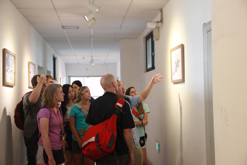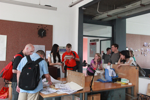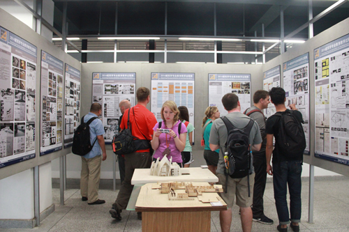 王俊老师陪同Nichoias老师参观建筑学院学生作业