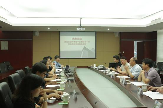 2014年6月11日上午,副校长范平志带领校长助理晏启鹏、学科中心主任刘建新、建筑学院院长沈中伟、书记王志杰等一行7人赴中国建筑西南设计研究院有限公司(简称西南院)会谈政府、企业、学校共建建筑学科(院)等相关事宜。西南院党委书记张宽,副院长李琦,总建筑师钱方,执行总建筑师郑勇,副总建筑师刘刚,人力资源部总经理牟铭,信息化管理部副总经理徐亚娟等出席会谈。
