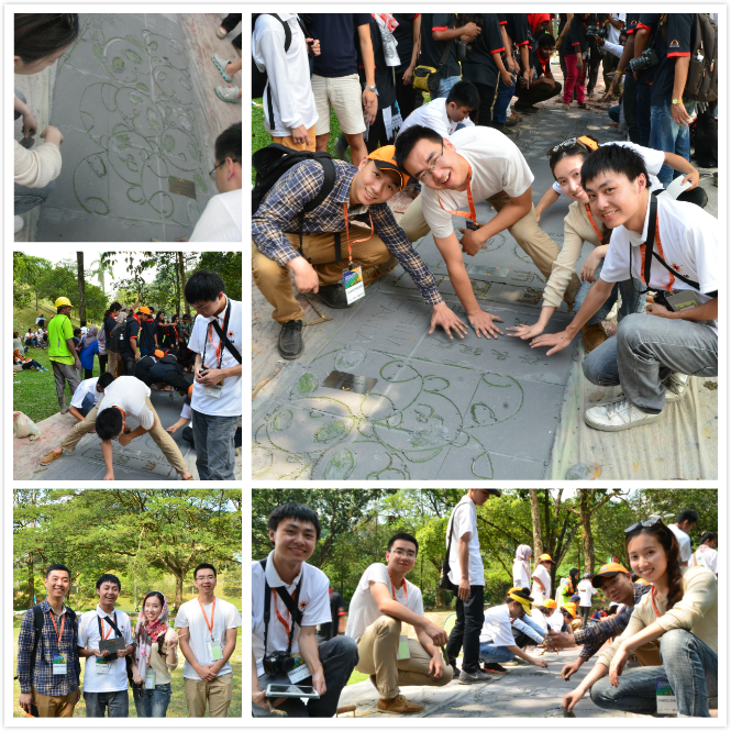 联谊会正式开幕式于25日早上在国际伊斯兰大学报告厅举行,开幕式上,来自马来西亚的建筑师Martin与来自法国的建筑师 Razin 分别以自己的设计经验和成果为大家分享了“可持续”与“和谐共生”理念如何在建筑设计当中实现,会后,两位建筑师与我院师生代表合影留念。开幕式后,承办方还为大家安排了一场关于“壁画”的讲座,要求同学们在26日,以铺地的形式,用“阴刻”的方法,在未干的水泥路面上独立完成一幅画,可绘制代表自己国家文化的图案。25日下午,在国际伊斯兰大学建筑学院外,不同国家的同学品尝了马来西亚的特色美食,也参观了建筑学院一层的展览空间。通过对展板作业的评析和介绍,各国同学分享了自己的看法。我院师生还以中国西南部传统建筑图示为例,为各国师生介绍了中国西部文化的特色,让大家更好的了解四川,了解成都,了解我院。25日晚,我院与来自香港大学同学、马来西亚东姑阿都拉曼大学(UTAR)华人同学一起,代表中国建筑师协会,参加了文艺演出,以一首中国风的曲目《青花瓷》获得阵阵掌声。观众们情绪高涨,尽管语言是最大障碍,不过在场观众还是跟着曲子与我院师生一起合唱。