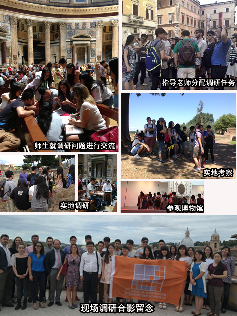建筑学院栗民副书记亲自带队,关心同学们的学习、生活,做好同学们的思想工作,并针对各种变化,随时与对方学校和相关部门协调沟通,保证了项目的顺利完成。参加游学活动的全体同学,不畏疲劳,谦虚认真,高质量地完成了交流学习项目,充分体现了交大学生严谨勤奋的优良传统,展示了建筑学子的创意和风采。16天的罗马之行,充分锻炼和展示了同学们的专业技能,提高了国际交流能力,更与参与项目的意大利师生结下了宝贵的友谊。之后,学院将举办“ITAD”访学项目摄影展及交流沙龙,中意双方教师将进一步指导同学们在罗马的设计作业参加中国建筑院校境外交流学生优秀作业展 。