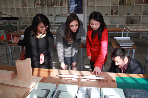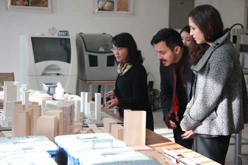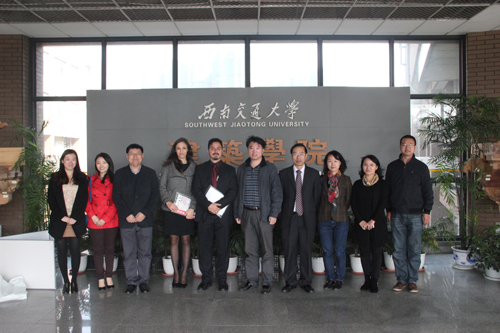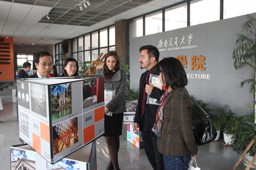 2014年11月3日,意大利罗马建筑学会设计师Leopoldo Russo Ceccotti、Laura Colazza和上海设计中心周叶青一行三人来访西南交大建筑学院。学校国际处副处长任新红、建筑学院副书记栗民、艺术与传播学院副院长支锦亦亲切会见了来访客人一行。