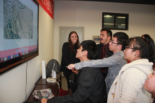 活动伊始,一段精彩的影片展示了2014年暑期意大利访学的成果,精彩丰富的内容不仅让参加了这次访学项目的同学们仿佛回到了在意大利的愉快时光,感慨万千,同时也让参与活动的300余名同学们大开眼界,跃跃欲试。视频之后,Leopoldo Russo Ceccotti和Laura Colazza从罗西里尼导演的电影作品《罗马,不设防的城市》出发,解析罗马丰富与开放的城市性格,挖掘罗马独特的城市语言,展现出“罗马既是一个城市,同时又是多个城市”背后深刻的城市内涵。同时Laura Colazza还讲解了有关于梵蒂冈这座宗教城市的发展历史和发展形态。在西方艺术设计领域,言必罗马。作为“永恒之城”,罗马在美学设计、城市建筑等领域极具活力,极大地丰富了现代艺术设计的内容。这次讲座使同学们深深了解到了罗马这座城市深深的魅力,也对这个访学项目产生了浓厚的兴趣。