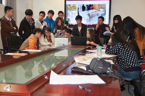 在意大利罗马建筑学会设计师Leopoldo Russo Ceccotti、Laura Colazza来访建筑学院期间,Leopoldo Russo Ceccotti和Laura Colazza还对暑期参加意大利项目的学生的设计作品进行指导,同学之间相互交流,同时将会把优秀作品推选到国际大学生设计作品大赛中。