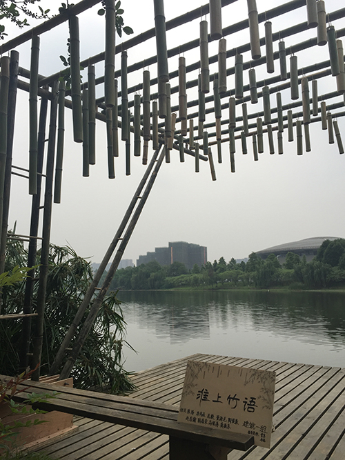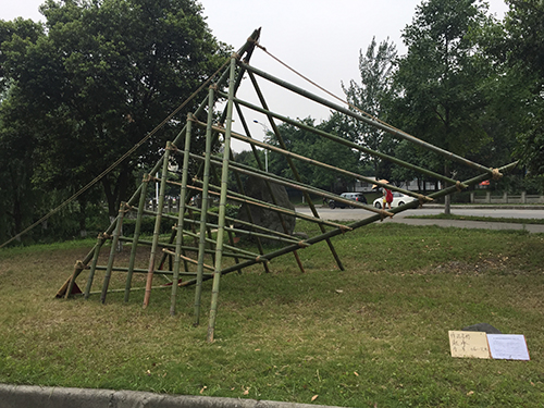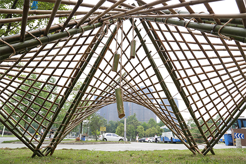沈中伟介绍,第一届“建造节”于2014年4月成功举办,而第二届“建造节”则是2015年西南交大国际大学生文化艺术节系列活动之一。其理念是文化育人、艺术育心、交通世界、沟通未来。这次活动邀请了四川大学、西南民族大学、西藏大学、成都理工大学、西华大学、西南科技大学参与,以实现七校师生同台竞技,同时也邀请了成都外国语学校、成都实验外国语学校、成都四中、成都七中、成都九中的师生一起观摩参与。此次建造节以生态材料为主题,充分利用竹子的中空质轻等特点,设计出具有材料特色、组接合理、结构与形式统一、具有美学表现力的小型空间作品,交相实现材料、形态、空间、结构与审美之间的理解与体验。活动历经了两周的方案设计和一周的建造,共三周时间。