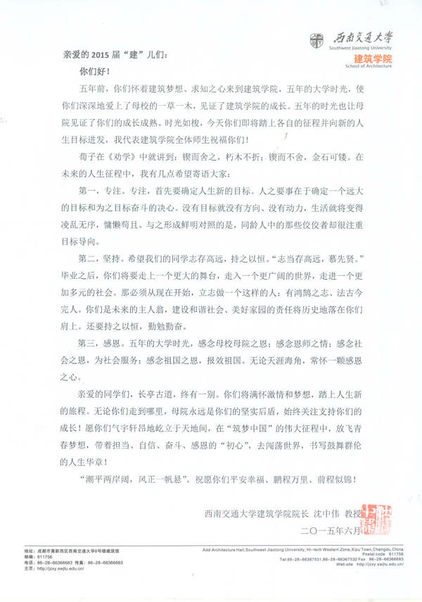 是礼物,是纪念,是祝福,是对于在建筑学院期间学习、生活美好的青春记忆;更是学院领导对他们毕业后牢记母校的教育和培养,积极进取,勇于担当,早日实现自己的青春梦想的希望。