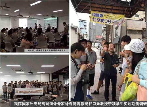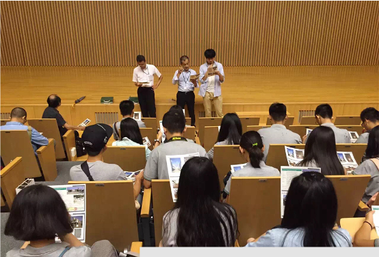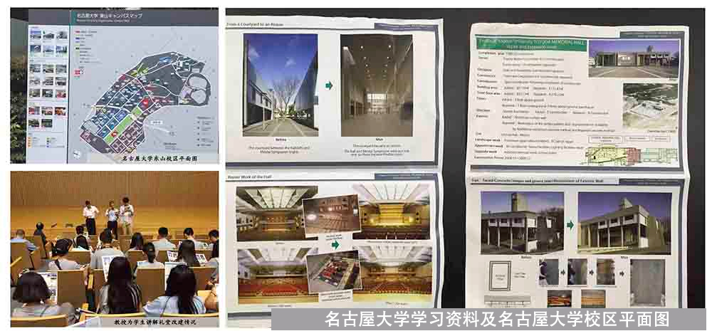 课堂教学活动部分: 在名古屋大学的课堂教学活动中,我院国家外专局高端海外专家计划特聘教授、原名古屋大学校长助理谷口元教授全程参与授课活动,名大西泽泰彦与小松尚教授为师生介绍了名古屋大学的基本情况,带领学生参观调研名古屋大学丰田大讲堂的前后期改造工程,以及改造后期的利用等问题,包括讲堂内部的功能区域划分,在座椅处设置网线、电源等细微之处都有所考虑。之后为大家介绍了关于国际化交流工作以及留学生的招收条件等问题。随后为下午的竞赛地块调研做了说明,并与学员们沟通交流,使学员们对于地块的情况有了较为清楚的认识,谷口元教授更是在炎热的下午亲自带领大家踏勘项目设计场地,并为学生做了耐心的解答。