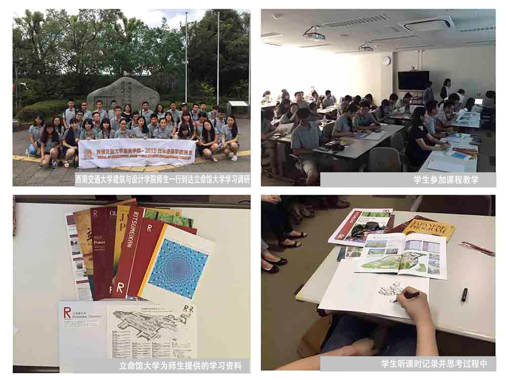 34名全体师生在猛暑中对日本城市商业综合体(表参道、银座商业建筑群)、城市交通枢纽(京都火车站、关西国际机场)进行了调研;参访了日本东京大学、名古屋大学、立命馆大学的校园建筑和历史遗产(金阁寺、清水寺、姬路城等);在2014年普利兹克建筑奖(建筑界诺贝尔)获得者坂茂先生设计的纸之教堂、六甲山集合住宅、淡路梦舞台等日本建筑大师作品地进行了现场教学。