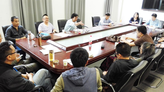 首先,美术学系主任洪毅教授介绍了美术学系概况,并依托学院“以艺术为特色、设计为基础、学科增厚度”的办学理念阐述了“教学是根本、科研是评估人才质量的硬性要求、社会服务是影响力”的美术学系发展思路。他指出美术学系当前有两个主要任务:第一个任务是争办一级学科硕士点,这是美术学系生存的根本;第二个任务是走出有特色的办学道路,其中包括城市公共艺术与风景园林的结合、为建设学院整个学科铺一层艺术底色、开出适合建筑与设计学院的通识类课程,同时他对美术馆的建设和人员配置,艺术类学科分类管理与考核等问题提出了期待。美术学系各位老师针对教学、科研和考核中的问题发表了各自意见。