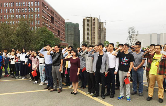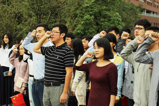犀浦校区参加了“共迎国庆 凝聚党心”---纪念建国66周年升旗仪式暨党员宣誓仪式。探花视频