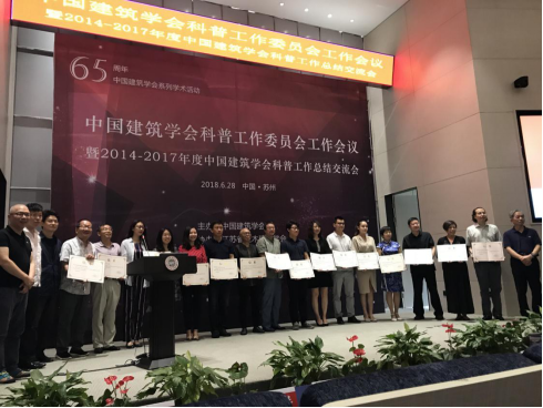 6月27日-29日,中国建筑学会在苏州大学金螳螂建筑学院召开科普工作委员会工作会议暨2014-2017年度中国建筑学会科普工作总结交流会。期间,我院荣获2014-2017年度中国建筑学会科普教育基地先进依托单位,并作为优秀科普教育基地代表在大会上进行科普经验宣讲交流。