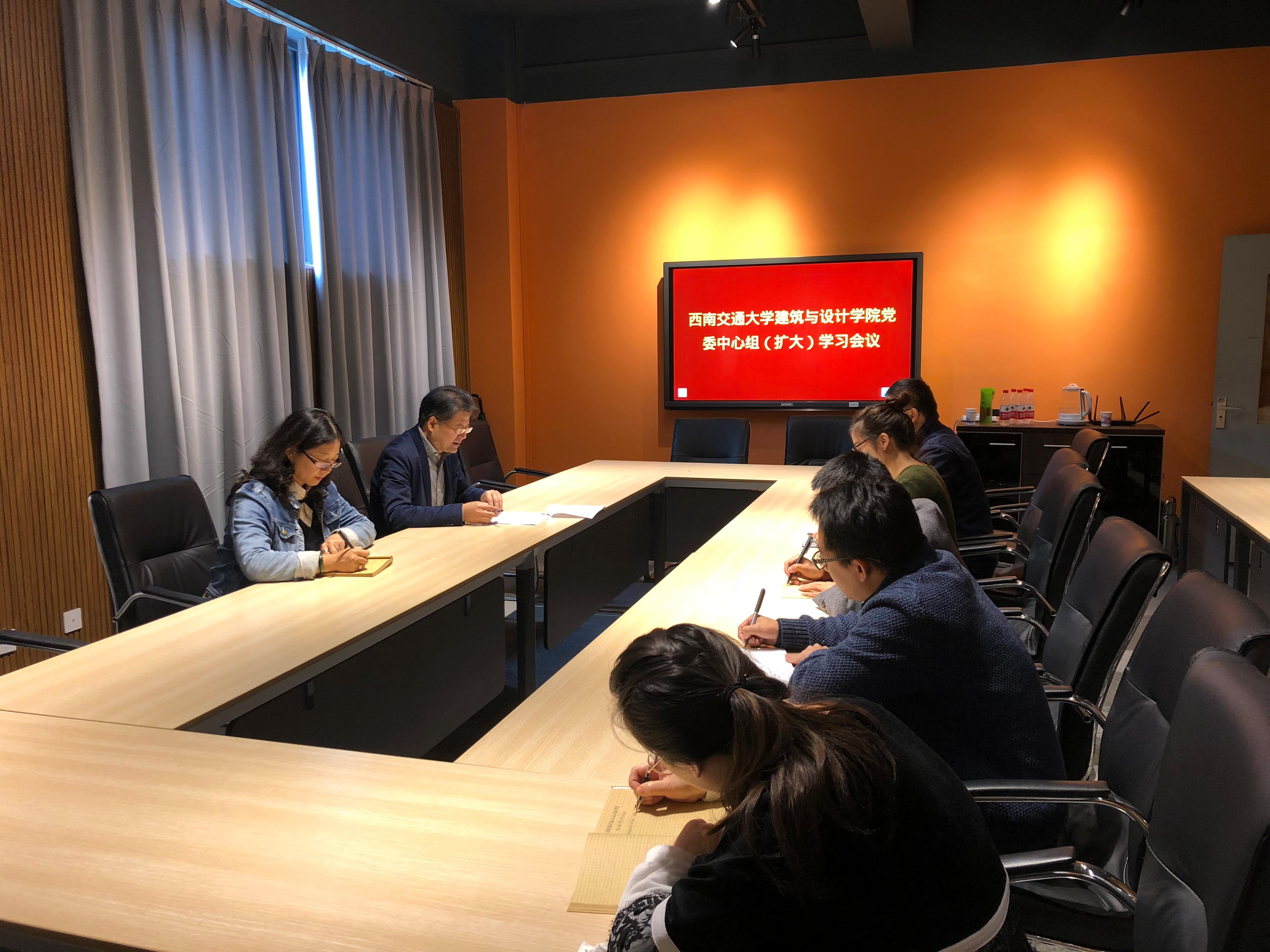 2018年10月26日上午11:30,建筑与设计学院党委在学院会议室召开院党委会议暨中心组学习会议,学习贯彻教育部党组第三巡视组巡视工作动员会精神。学院党委委员、班子成员、院团委、综合事务科及教师服务科有关同志参加了学习会,会议由学院党委书记沈中伟同志主持。