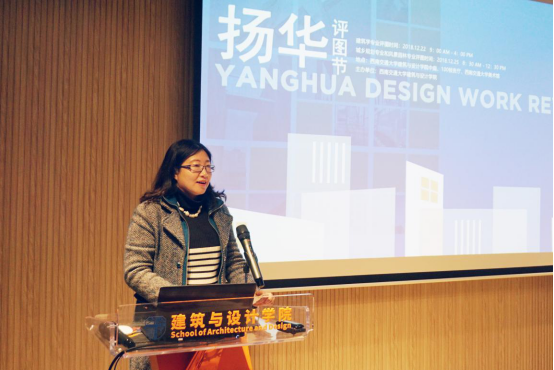 学院副院长杨青娟老师,党委副书记刘一杰及系领导,专业老师、同学代表参加“扬华评图节”城乡规划与风景园林专场活动,规划专业副系主任毕凌岚老师主持活动。