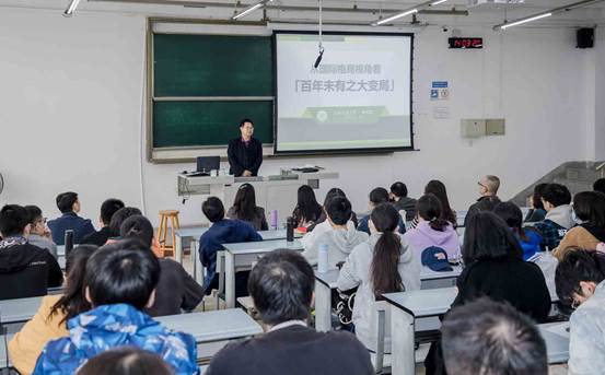 11月19日下午,学校党委常委、副校长姚发明同志在犀浦校区X1213教室为建筑与设计学院本科生带来了一堂以“从国际格局视角看百年未有之大变局”为题的生动的形势与政策课。姚发明同志联系的基层党支部建筑与设计学院艺术设计系教师党支部全体党员、建筑与设计学院建筑系青年教师陈尧东、地球科学与环境工程学院党委本18级党支部全体党员一起共同聆听了本次形势与政策课。