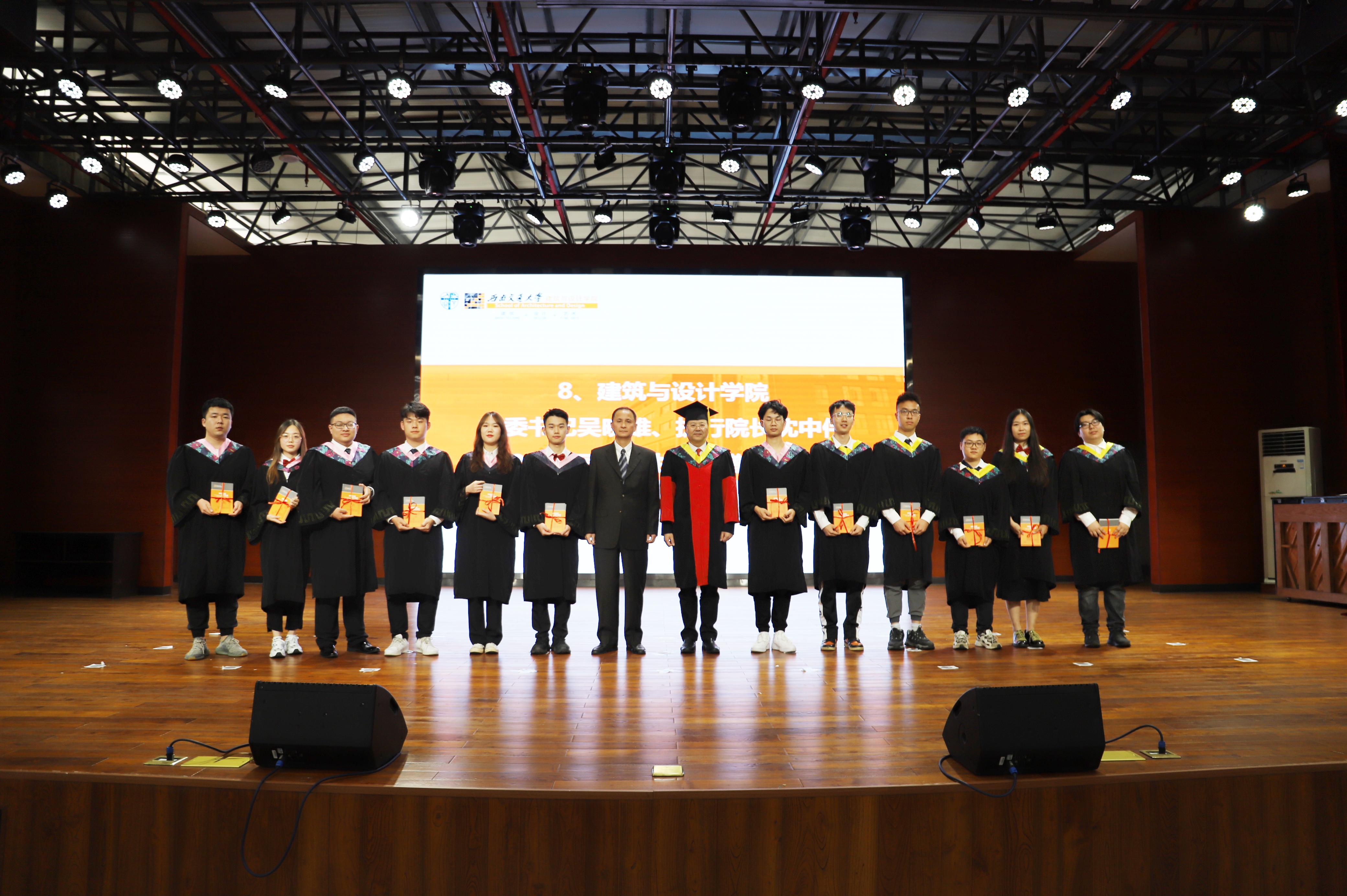 在高亢的音乐声中,建筑与设计学院学位委员为毕业生拨穗、授予学位,并合影留念,将典礼的气氛推向高潮。
