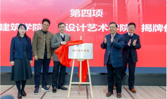 王顺洪、杨丹、艺术设计学院院长林家阳、学院党委书记闵光辉、执行院长支锦亦为设计艺术学院揭牌。