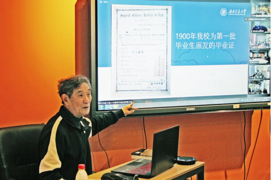 梁锦堂老师以时间为序,生动详实地讲述了我校的诞生及发展历程和我校校友的光荣杰出事迹,一张张极具历史价值的老照片诉说着当年的光辉岁月,一件件泛黄的历史文物再现着当年的风采。从初创榆关到复校唐山,再到搬迁峨眉定址蓉城,我校在一次次校址变迁中创造了历史,为祖国输送了无数人才栋梁。梁锦堂老师还讲述了我校校训“竢实扬华”的由来。表达对我校学子脚踏实地,振兴中华的殷切期望。