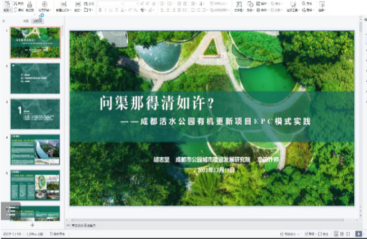 胡志坚总设计师展示了EPC模式在公园城市中的实践,以活水公园更新为例,回顾了活水公园更新设计及建设的全过程,展示了项目获奖、修复优化提升工程实施的背景和模式,介绍了有机更新的具体实施过程及其建设后的反思。