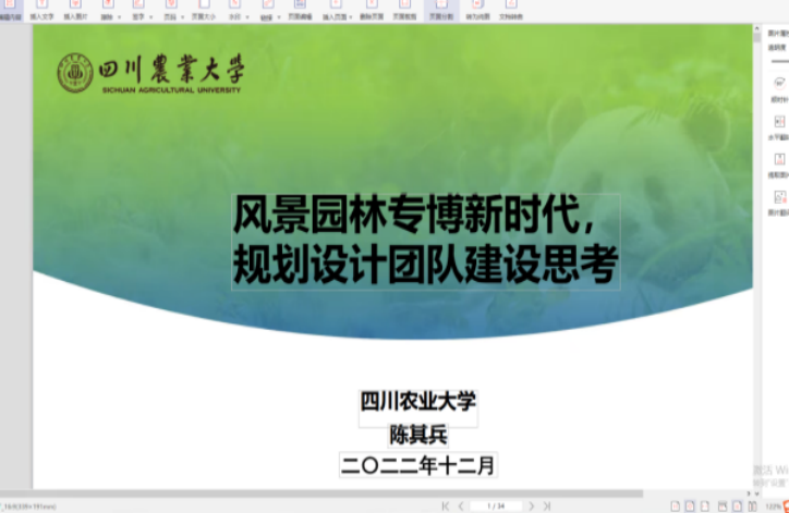 风景园林专业的办学经验和办学成果,探讨了在当前中国绿色发展和世界大变局历史交汇的新时代,如何面向国家和社会需求提升专业人才培养水平的新思路。本次会议由探花视频
