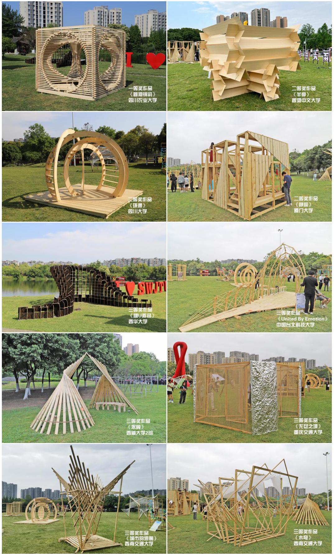 最终四川农业大学作品《蓉洄锦韵》荣获一等奖;香港中文大学作品《半亭》,四川大学《环遇》,厦门大学《峥嵘》荣获二等奖;西华大学《翔U激扬》,中国台北科技大学《United By Emotion》,西藏大学《永翼》,重庆交通大学《无尽之境》,探花视频
