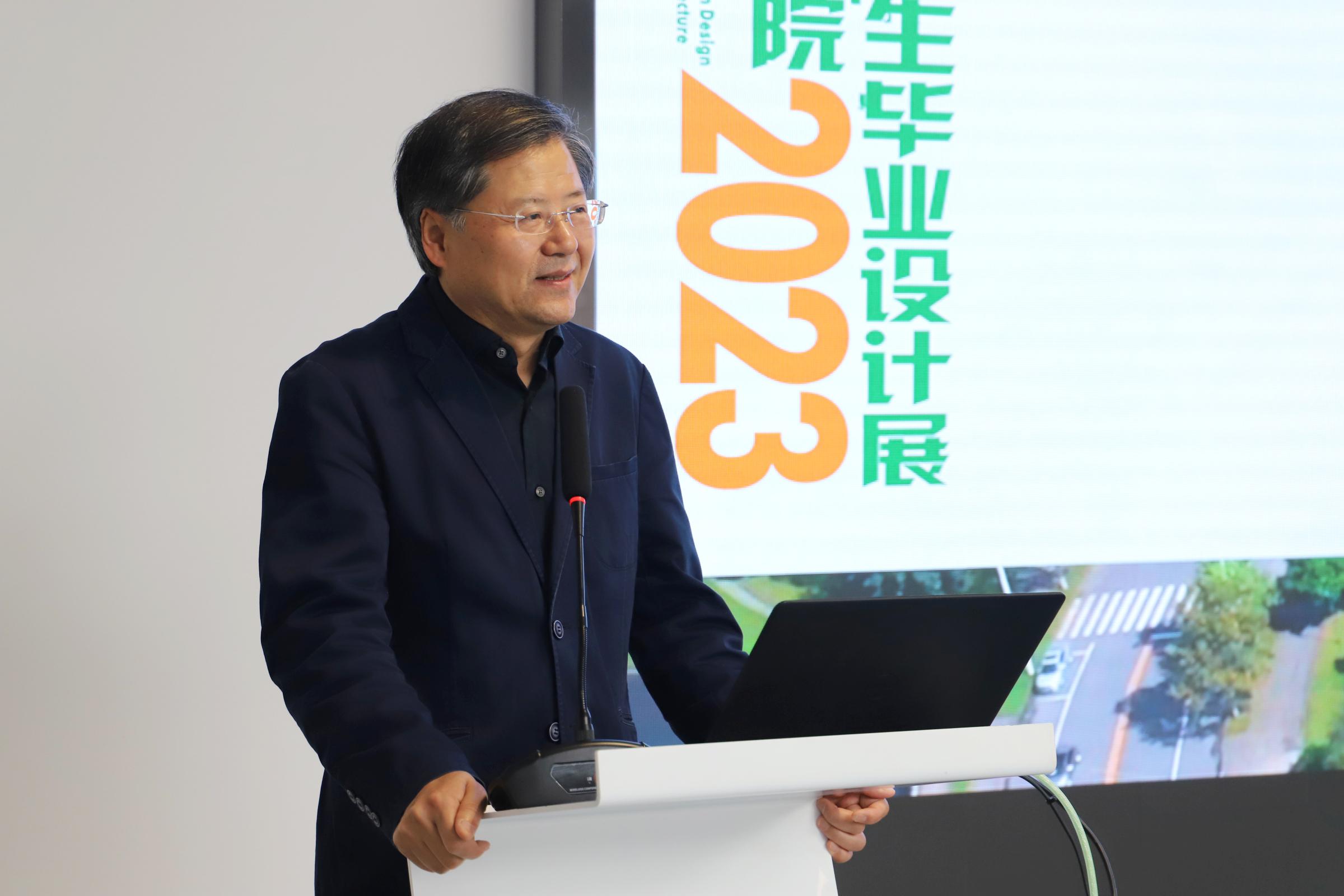 姚发明副校长在致辞中指出毕业设计是完成本科阶段人才培养目标的重要实践教学环节,也是检验学生综合运用专业知识、分析解决实际问题的能力、考察本科教学和人才培养质量的重要依据之一。2023年建筑学院本科毕业设计工作内容丰富,形式新颖,通过高效、即时、互动、共享的毕业展形式,全面展示了建筑学院毕业生们的勇气、才能、智慧、风度和以梦为马、不负韶华的初心与情怀,必将为同学们成功迈向社会打下坚实基础。同时,祝建筑学院本科毕业设计展圆满成功,祝建筑学院全体同学前程似锦,未来可期。