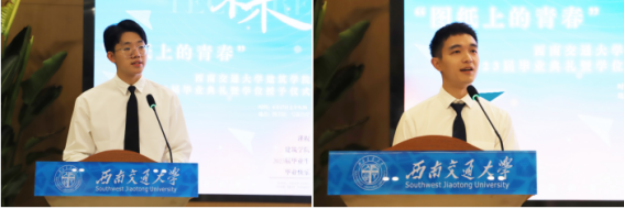 建筑学院本科毕业生代表高建一和研究生代表唐祥龙同学发言中,代表全体2023届毕业生,向精心培育我们的学院和老师表示衷心的感谢,感谢学院为我们提供了一个开放、创新、包容的学术氛围,让我们身临其境的感受建筑、规划、景观和美术的魅力和挑战,激发了我们对建筑艺术的热爱、探索,培养我们丰富的实践经验和广阔的视野。未来我们必将秉持初心,坚定信念,怀揣感恩,拥抱希望,牢记“精勤求学,敦笃励志,果毅力行,忠恕任事”的交大校训,发扬“竢实扬华,自强不息”的交大精神,勇敢的迈向美好的未来,为祖国发展做出我们自己的贡献!