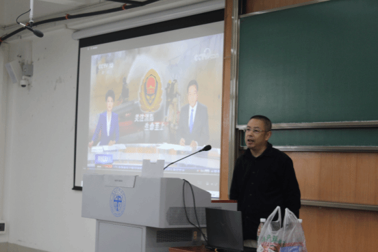 李为群老师由一个火灾视频和许多本校火灾案例说明人们缺乏消防安全意识的普遍性,继而从责任追究、学校中存在的火灾安全隐患和常用消防设备及其使用方法三个方面具体普及了消防安全知识。李为群老师再次强调了消防安全。